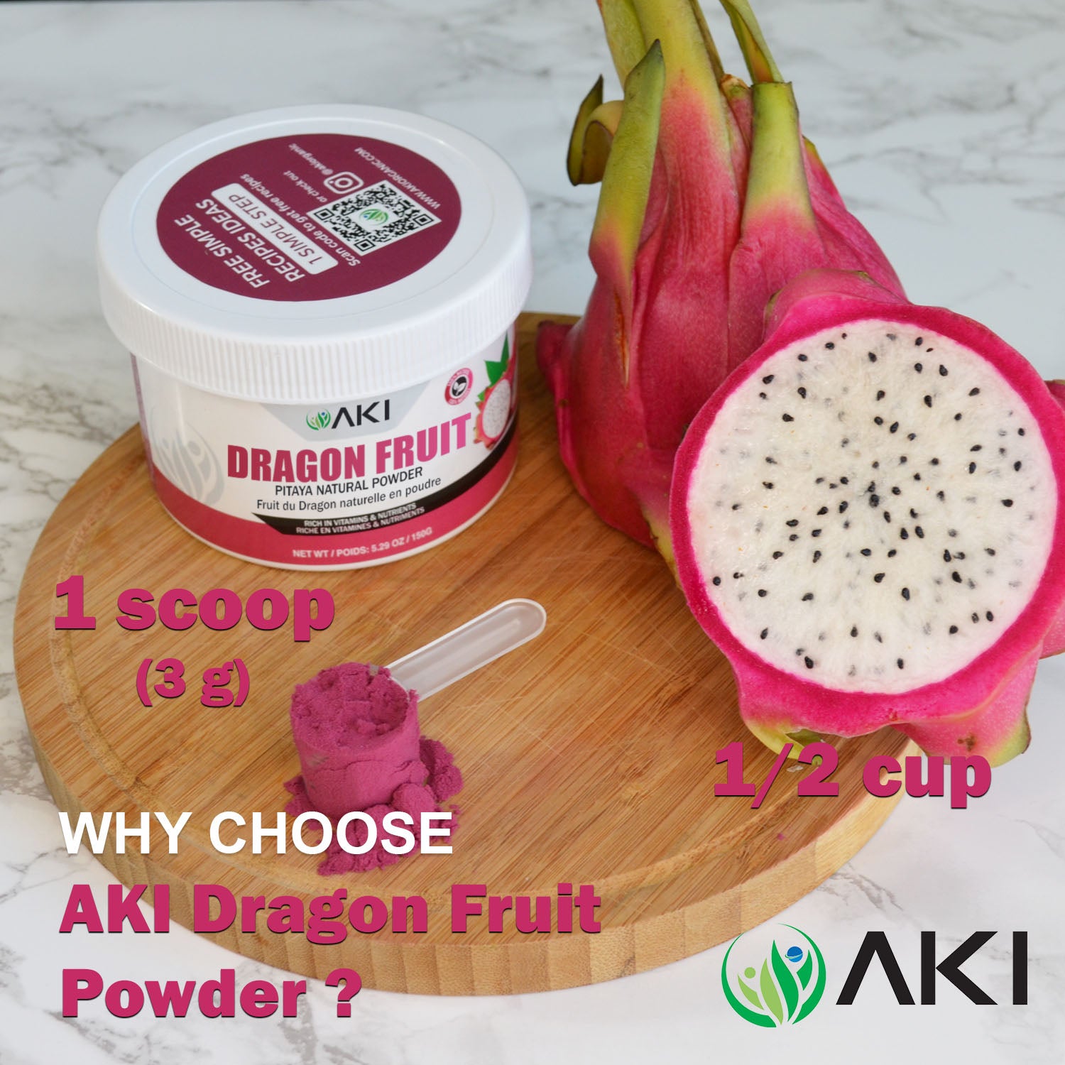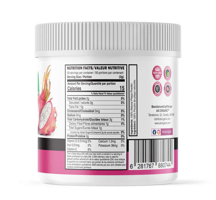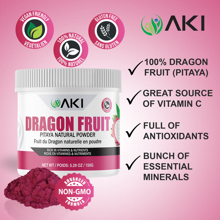 - NO ADDED FLUFF – At Aki, we aim to use the purest and finest ingredients in our specialist powdered formula. Our Natural Pitaya Powder is made from dehydrated fresh dragon fruit, a specialist process that doesn’t require excessive use of synthetic fillers like freeze-dried products do.