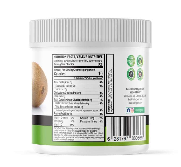 Kiwi Powder is nutrient-dense and full of vitamin C and is an essential nutrient when it comes to boosting your immune system to ward off disease. It may support immune function and reduce the likelihood of developing cold- or flu-like illnesses.